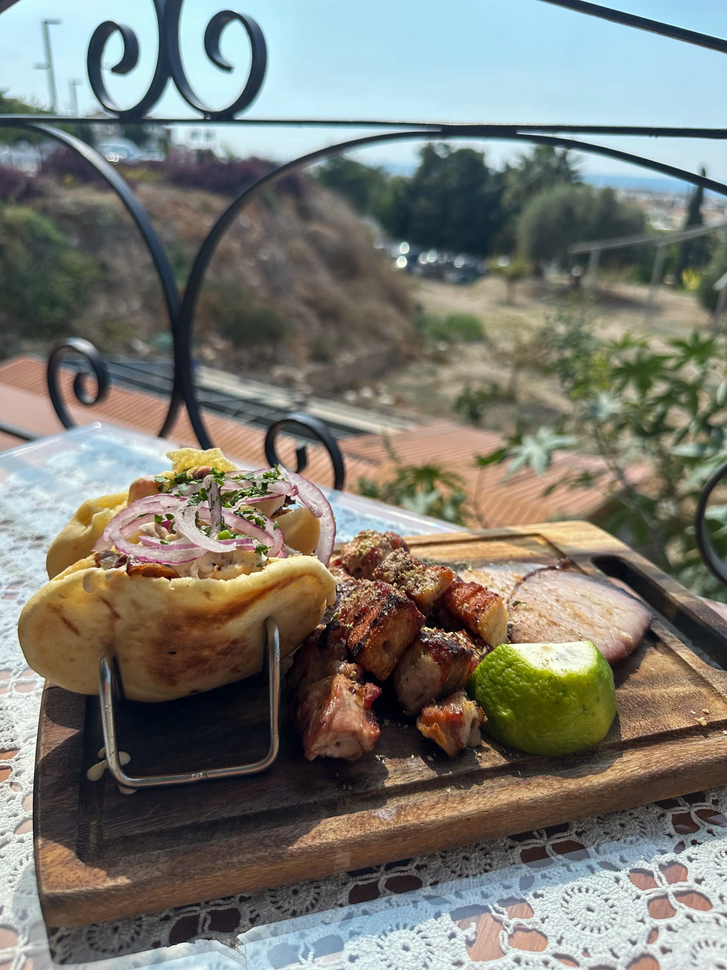 We went for the meat meze for 2, at €24 in total for a lunch seating and the food just kept on coming! Tzatziki, cheese with caramelised nuts, greek salad, roasted pork, Cypriot potatoes… the chicken gyros were 😍👌🏼👏🏼 What more could you want….